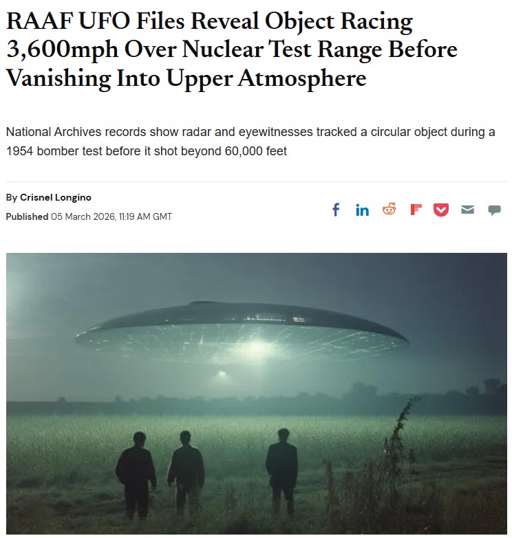 In the dry desert skies of South Australia in 1954, military observers watched something they could not explain. During a test flight at the Woomera weapons range, radar operators and trained personnel tracked a mysterious circular object hovering above the path of a Canberra bomber. Moments later the object accelerated at an astonishing speed of roughly 3,600 miles per hour before climbing rapidly into the upper atmosphere and disappearing. Read full article…